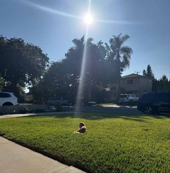Yesterday afternoon, my daughter Crystal and I were sitting on the front porch as Rocco enjoyed laying on the cool grass. Crystal took a picture of him relaxing.